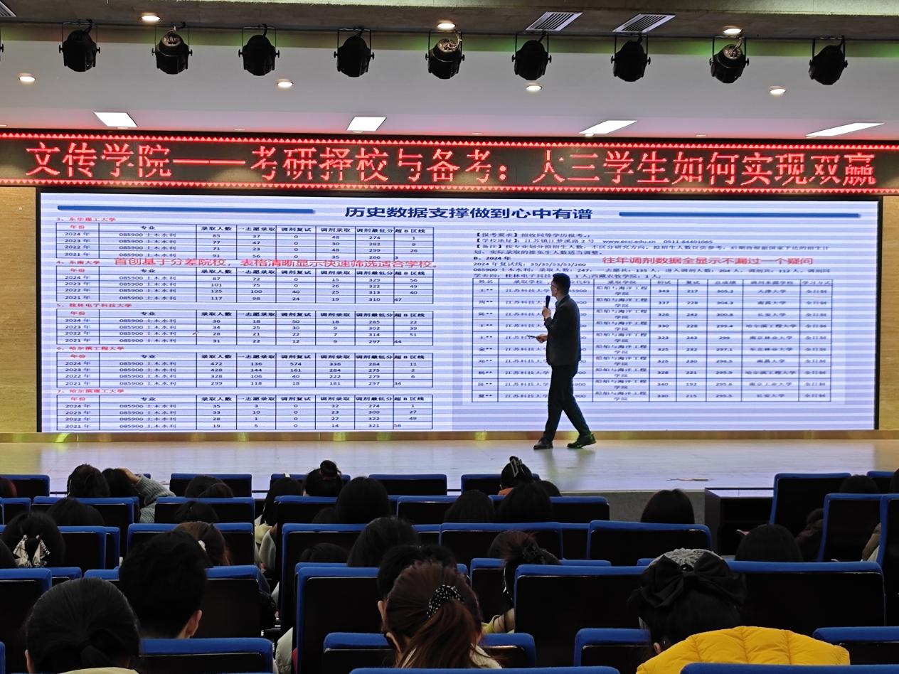 为提升我院学子的考研备考能力和择校技巧,帮助学生科学高效备考,促进未来职业发展。3月10日,我院邀请纪老师于自力楼三楼报告厅举行2026年考研文传类专场指导讲座,吸引了众多怀揣考研热情的学生前来参与。
