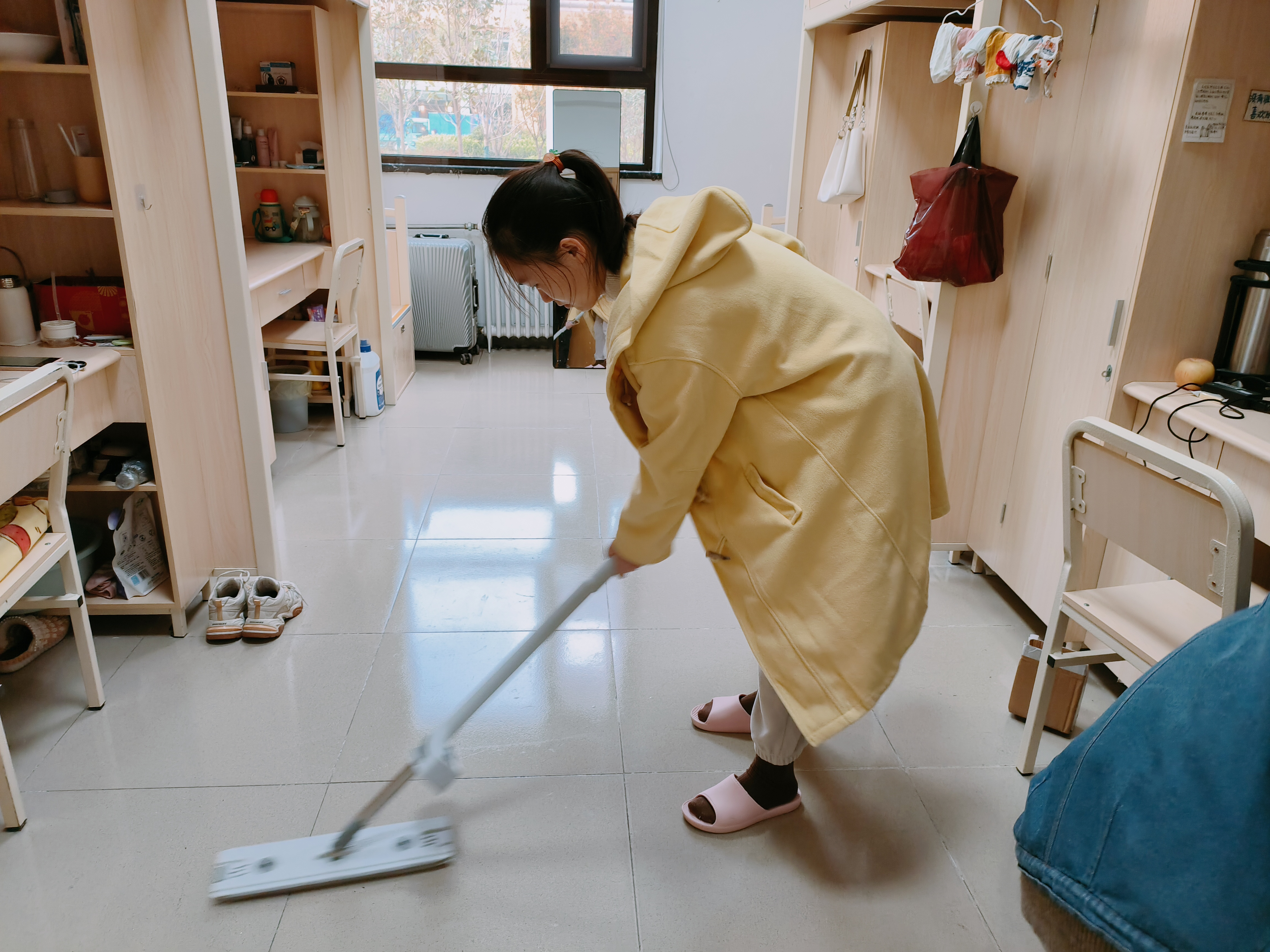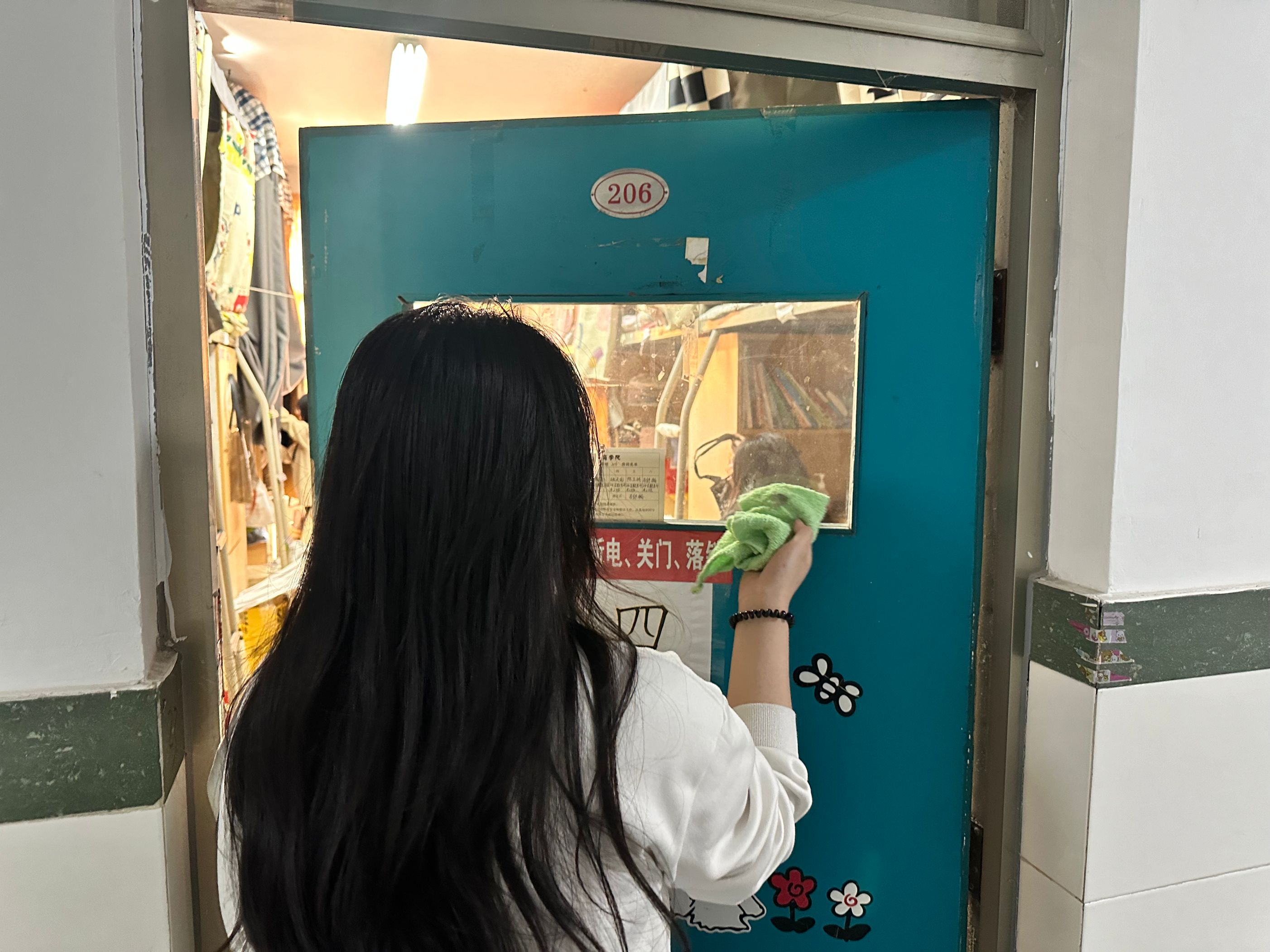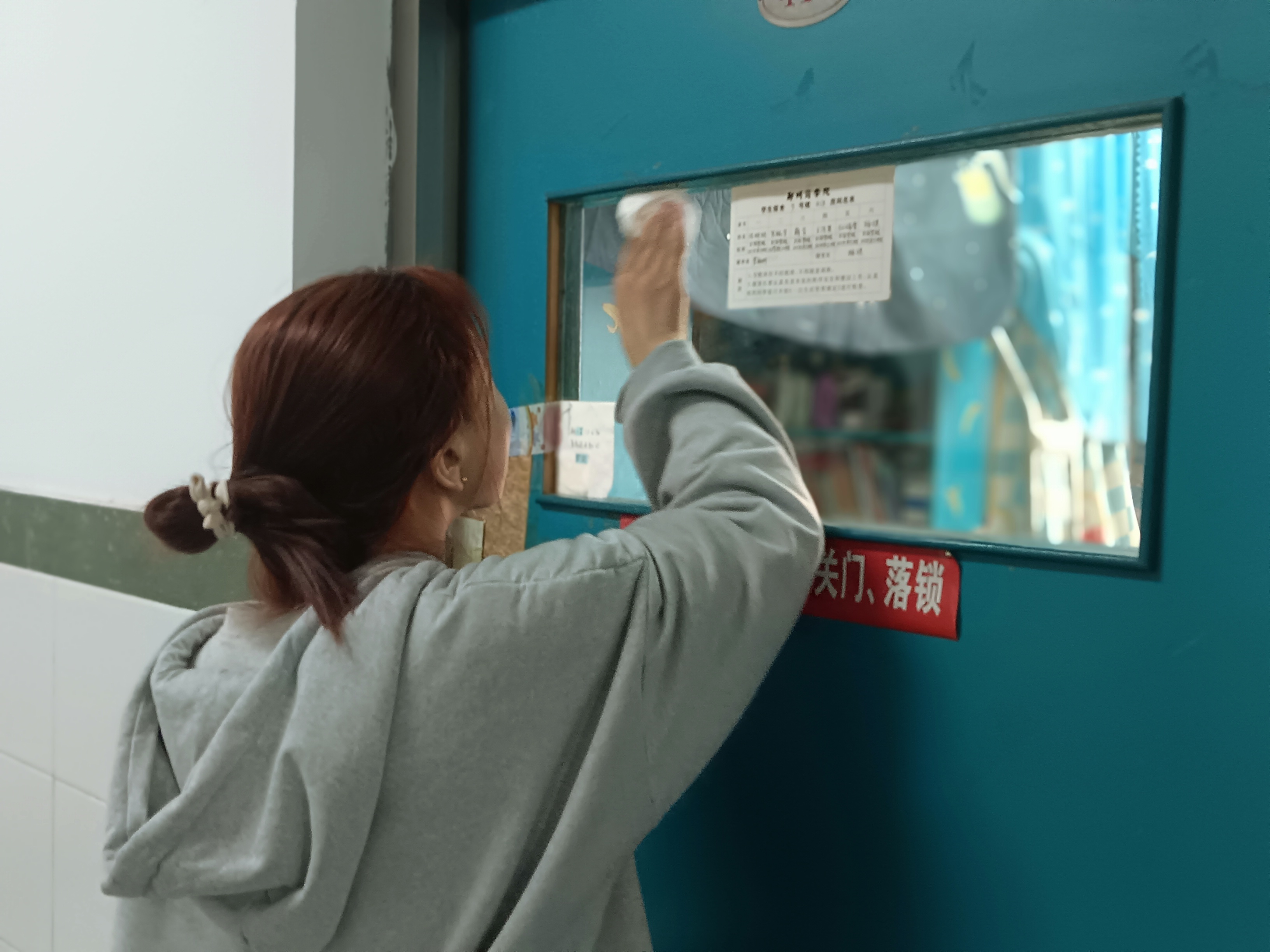 本次活动将门窗整理打扫作为重点任务。辅导员带领学生宿舍门窗进行清理,包括玻璃擦拭、窗框污垢铲除、窗台和暖气片杂物清扫等,确保门窗干净明亮。同时,仔细检查宿舍公共设施是否有破损,及时排查安全隐患,并上报给宿舍管理员进行报备整改。