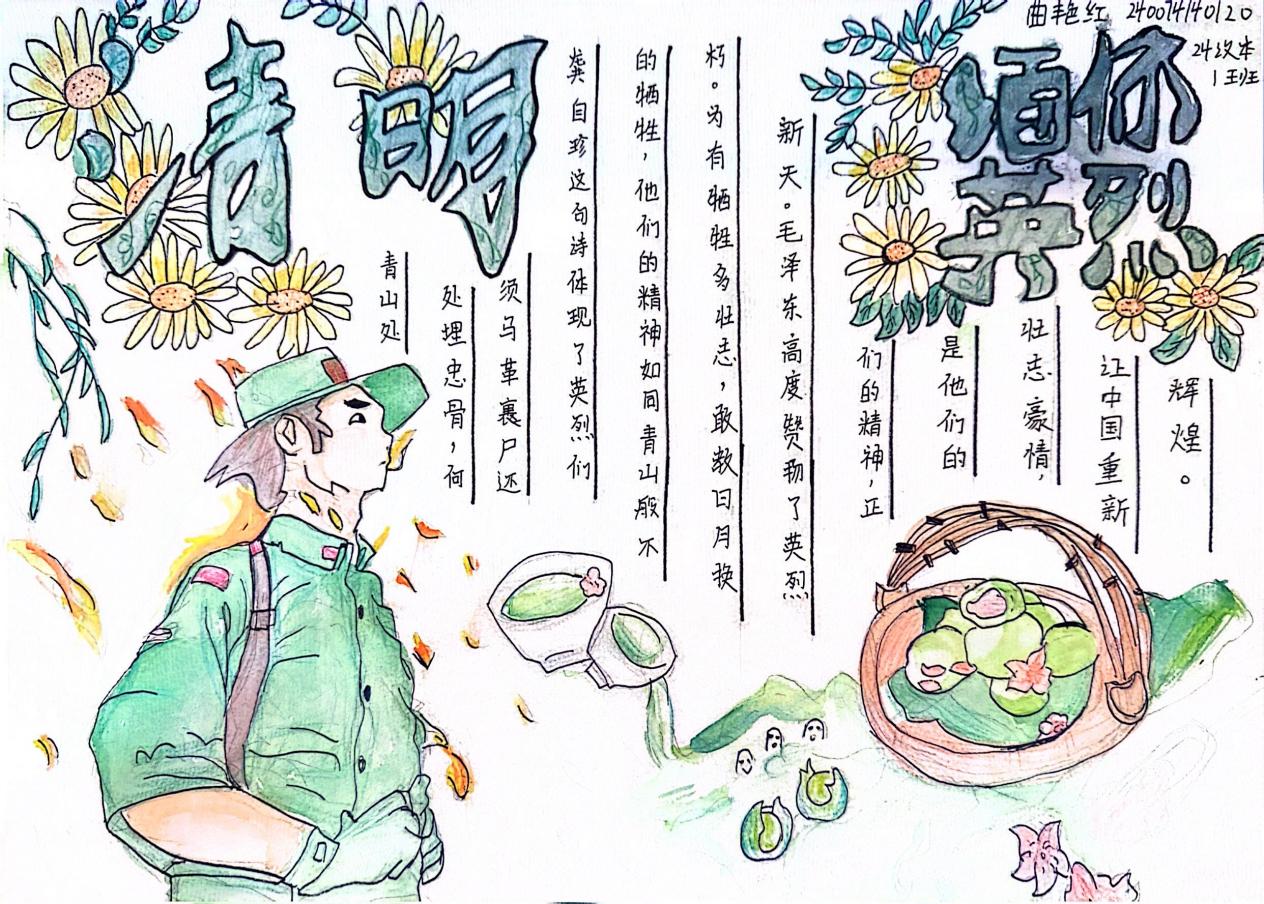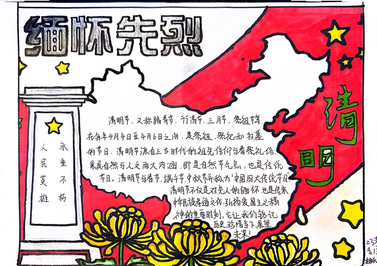 为深入贯彻落实爱国主义教育精神,缅怀革命先烈的丰功伟绩,传承红色基因,弘扬英烈精神,进一步强化同学们对历史的铭记与敬意。我院于4月1日至4月6日组织开展了“清明祭英烈,薪火永传承”手抄报活动。