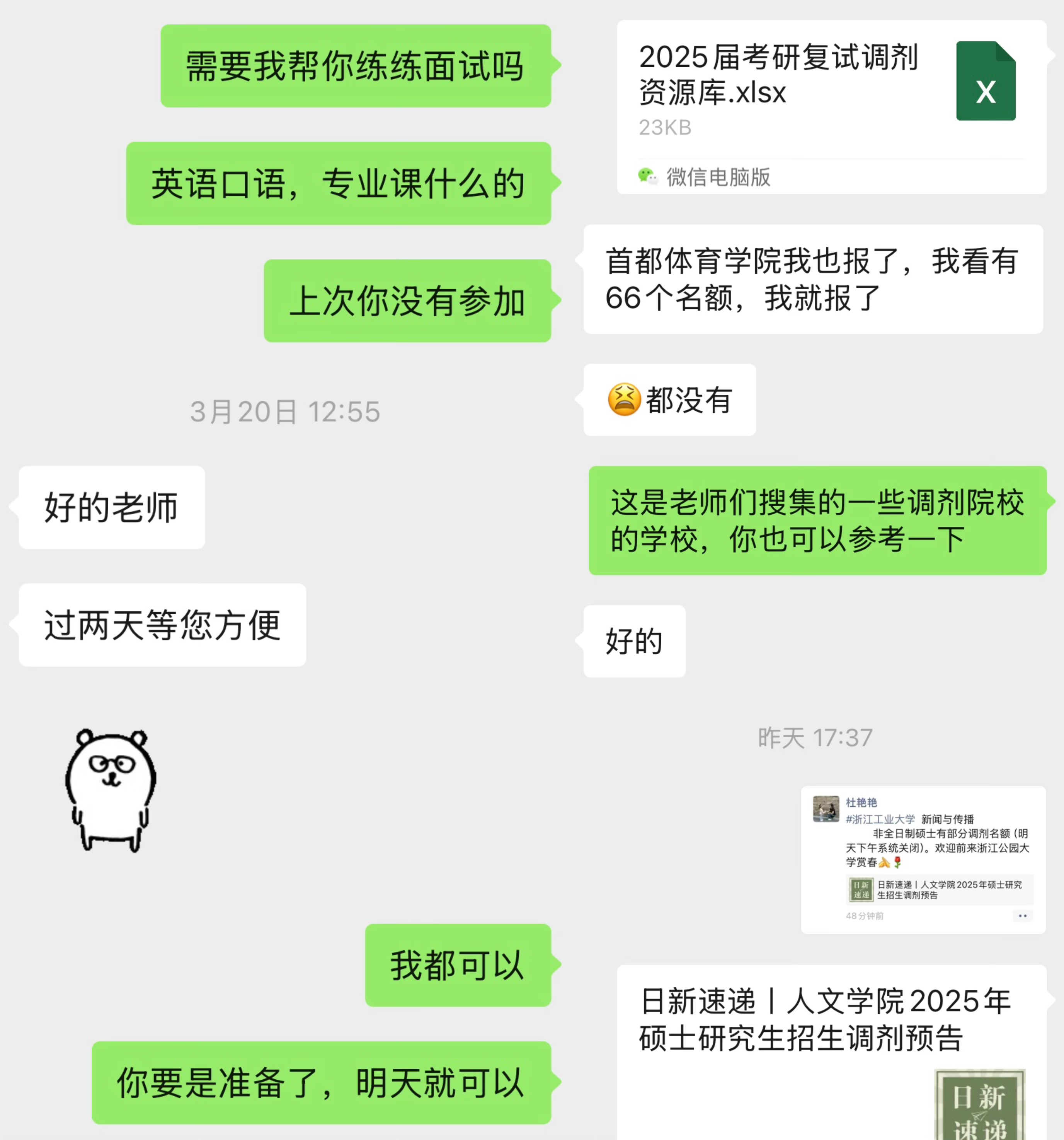 随着复试结果的逐步揭晓,成功上岸的学生们纷纷传来喜讯,而未能如愿的学生也在老师的悉心鼓励下迅速调整心态,积极投身于调剂工作之中。在调剂阶段,教研室的老师们化身“信息导航员”,为学生提供精准的调剂信息和详尽的院校分析。老师们指导学生如何利用研招网、中国考研网等权威平台高效获取调剂信息。同时,针对每位学生的独特情况,老师们提供一对一的个性化指导,帮助学生制定科学合理的调剂方案,精准选择适合的调剂院校。