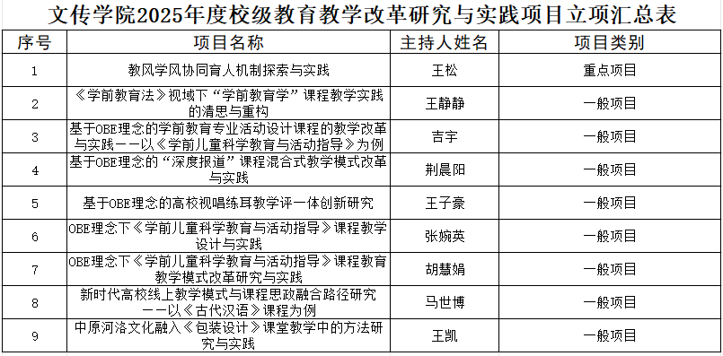 根据《beat365唯一官网关于公布2025年校级教育教学改革研究与实践项目立项工作的通知》,我院8项2025年校级教育教学改革与实践项目获批立项,其中重点项目1项,一般项目8项,立项名单如下。