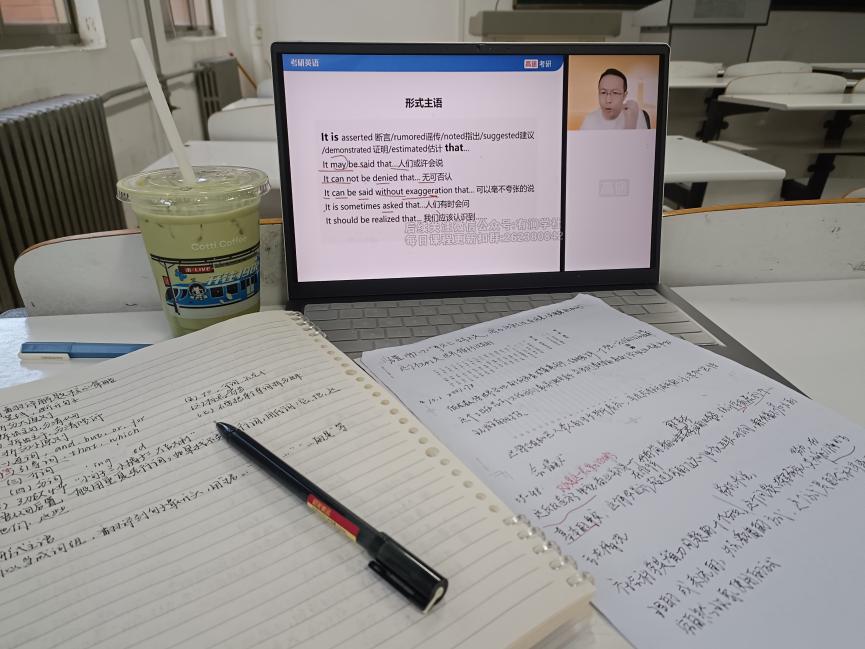 第三是英语:英语是在开始333的时候就正式开始英语了,大三上学期的时候跟着老师考研英语词汇已经过完一遍了,寒假的时候也会背一下单词,但是不多,没有正式学。三月份的时候英语是上午专业课之后背单词,下午听阅读技巧课、语法课以及练题。语法课我主要是听田静老师的每日一句和颉斌斌老师66句的,两位老师都很不错,可以挑一个适合自己风格的老师专一听,不建议像我一样混着听。阅读技巧课是唐迟老师,唐迟老师的阅读技巧对于我来说是很有用的,听完之后就知道英语阅读如何练习了。基本前期是这样的。后期就是阅读题循环刷,明白出题思路,小三门也是跟着老师来的。完形填空跟易熙人老师,新题型是刘琦老师,作文是石雷鹏和晶婷老师,看一下自己更适合哪个老师。我的建议是作文最好是自己整理模板,老师辅助。