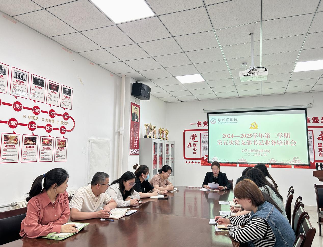 为切实做好2025届毕业生党员组织关系转接工作,确保党员管理规范有序,进一步加强基层党建工作质量。5月9日下午15时,我院于自力楼101党团活动室召开“2024-2025学年第二学期第五次党支部书记业务培训会”,文传学院党委书记贾蓓、全体基层党支部书记共同参加培训,会议由贾蓓书记主持。