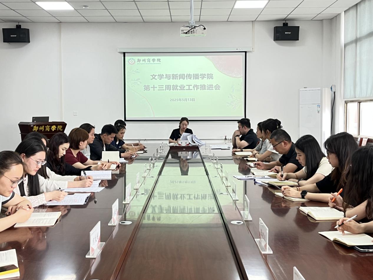 5月13日,学院召开第十三周就业工作推进会,学院党委书记贾蓓、团委书记王凯及全体辅导员参加会议。