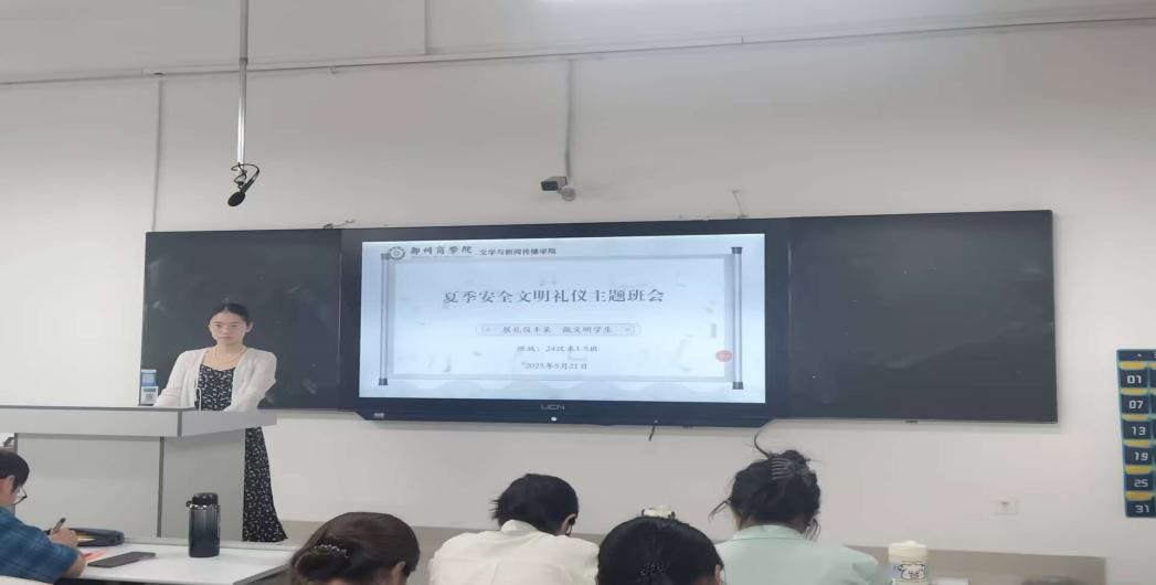 班会伊始,各班辅导员以夏季典型案例为切入点,结合新闻视频,直观展现溺水、火灾、交通等安全事故的危害,以及公共场合不文明行为对校园秩序的影响。随后,各辅导员老师进行了文明礼仪教育,要求同学们注意课堂礼仪,宿舍里要保持卫生整洁,在公共场合,勿大声喧哗。让同学们认识到当代大学生学习文明礼仪的重要性。最后,辅导员老师呼吁同学们做一个文明有礼的新时代青年,督促学生们将文明礼仪知识融入日常实践之中,养成文明习惯。