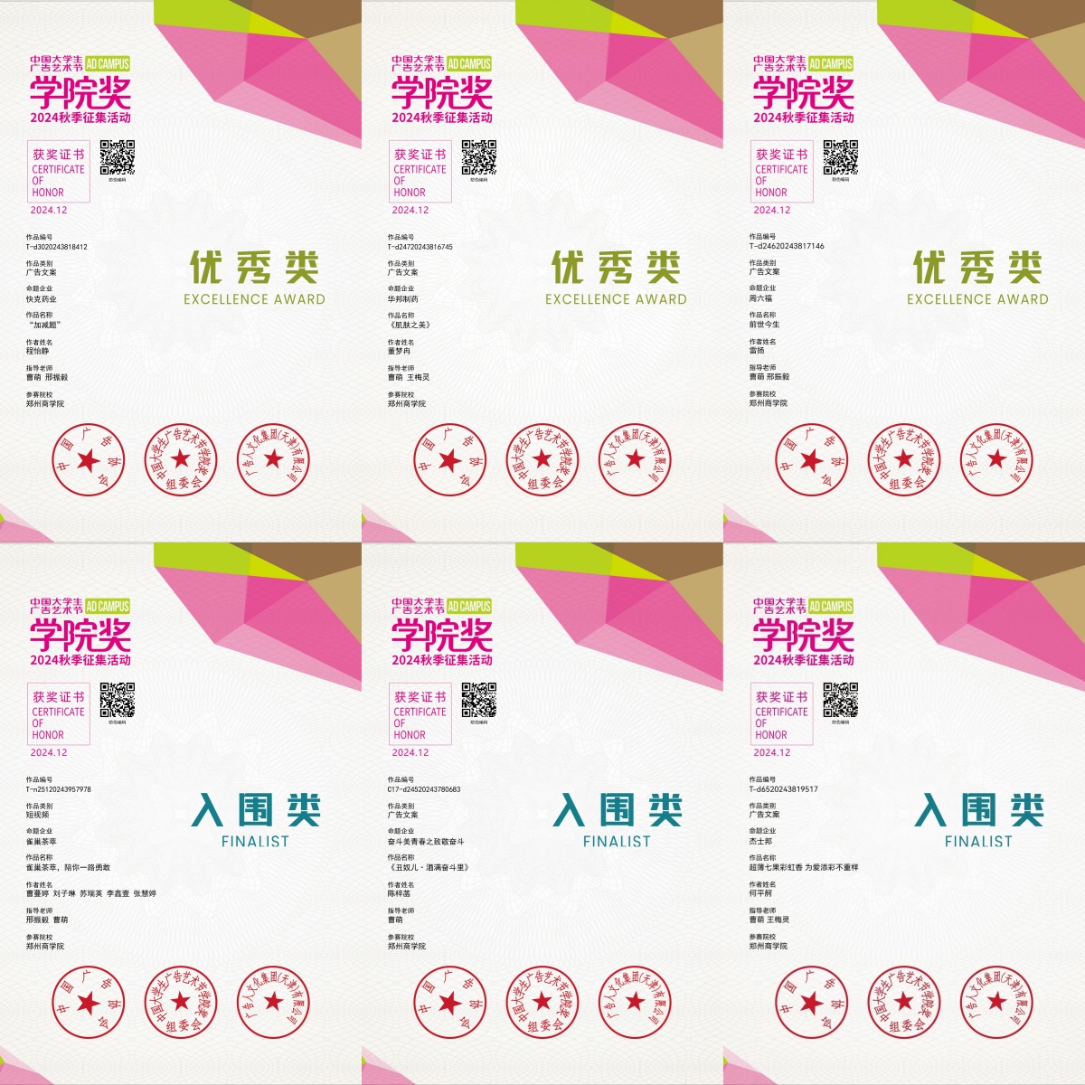 近日,经国家工商行政管理总局正式批准,并由中国广告协会倾力主办的“中国大学生广告艺术节学院奖2024年秋季征集大赛”圆满落幕,其获奖名单正式对外公布。在此次大赛中,我院学子表现出色,共斩获17项大奖。同时,翟晓瑞、邢振毅、曹萌、王梅灵、宋秀5位教师凭借其卓越的指导能力,荣获“优秀指导教师”殊荣。