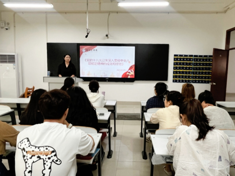 我院教师第一、二、三党支部,学生第一、四、五、六、七党支部开展“推动深入学习贯彻中央八项规定精神学习教育走深走实”专题学习会。会上,各党支部书记围绕中央八项规定精神核心内容,结合校园实际案例,从学风建设、文明习惯的养成等方面展开讲解,呼吁支部成员们要以高标准严格要求自己,做优良作风的践行者和传播者。大家表示,今后将从遵守课堂纪律、杜绝铺张浪费、抵制网络不良信息等小事做起,充分发挥先锋模范作用,带动身边同学共同营造风清气正的校园环境。