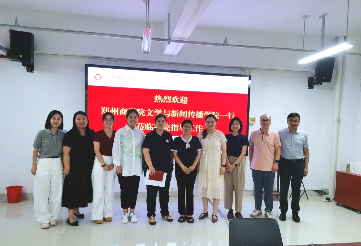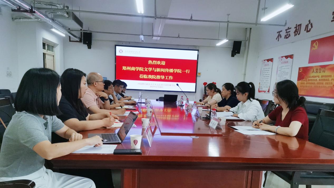 为深入推进新闻学专业人才培养方案修订工作,学习其他高等院校在专业建设和教学改革中的先进经验,6月18日下午,文学与新闻传播学院副院长石璐、新闻与传播教研室主任许明月、考研考证教研室主任曹萌、新闻学专业教师张娇娇赴河南财经政法大学人文艺术学部传媒学院开展人才培养方案专题学习交流,双方围绕人才培养目标、专业建设、课程体系优化、实践教学路径等关键内容进行了深入探讨。