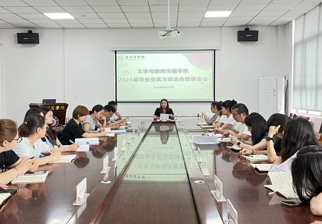 2025年6月11日,文传学院在H216会议室召开2026届毕业生实习双选会部署会议,学院党委书记贾蓓、团委书记王凯及全体辅导员参加会议。此次会议旨在全面部署实习双选会工作,为学生和用人单位搭建高效对接桥梁,助力学生实习就业。