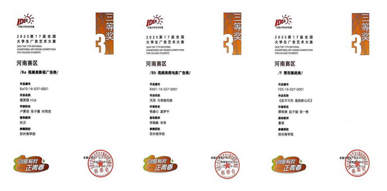 作为教育部高等教育司指导、中国高等教育学会广告教育专业委员会主办的国家级A类赛事,“大广赛”不仅是全国高校文科生展示创意才华的最高舞台,更是检验广告教育成果的重要平台。今年河南赛区共有76所高校、125个二级学院参赛,报送作品19310件,最终入围14564件。经过层层专家评审,beat365学子凭借创新思维与专业功底勇夺佳绩。