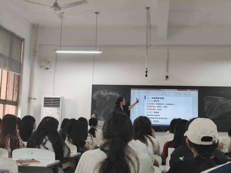 从教学检查情况来看,汉语言文学教研室的任课教师们都能根据人才培养目标,规范地完成教学大纲,设置教学进度表,各项教学资料准备充分。其中,张永青老师讲授《文字学》,通过生动的案例和互动设计,成功引导学生进入文字学的研究视野,为后续课程奠定了良好基础。此外,她上课期间与学生互动频繁,讲课逻辑清晰,PPT制作详美,板书规范,展现出文学教研室教师备课严谨的态度。陈静老师讲授《中国古代文学Ⅲ》,以古典词作叩开文学之门,引导学生结合课堂所学,梳理初唐四杰的文学成就与作品特点,培养学生的考点分析能力与知识整合能力。禹月娜老师讲授《语文课程与教学论I》,使用思维导图,逻辑清晰将课程与教学、课程论与教学论之间的关系,教学与教学论等概念通过思维导图清晰地展现出来,有助于学生把握教学主要内容。各位教师们都能够提前进入教室,做好上课准备,课件详美,板书工整,授课认真,精神饱满。学生们听课状态积极,课堂气氛活跃。