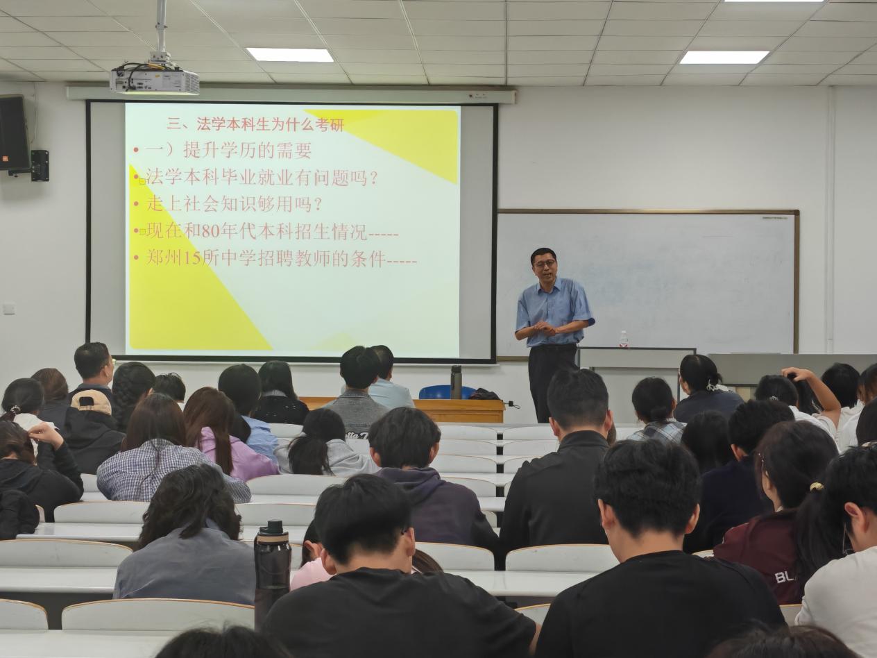 随后,李文江教授详细介绍了“河南工业大学学校概况、学科专业、人才培养及法学院概述、师资力量”。他指出,河南工业大学作为河南省重点建设高校,始终坚持以立德树人为根本,以服务国家和地方发展为己任,在学科建设、人才培养、科学研究等方面取得了显著成就。学校的法学学科作为重点发展的学科之一,拥有完善的课程体系和优质的教学资源,致力于培养具备扎实理论基础、较强实践能力和创新精神的复合型法律人才。法学院汇聚了一批学术造诣深厚、教学经验丰富的师资队伍,其中不乏国家级、省级优秀教师与行业专家,同时还与众多企业、律所、司法机关建立了实践教学基地,为学生提供了充足的实习与实践机会,助力学生将理论知识转化为实际应用能力。李教授表示,河南工业大学法学院始终秉持开放办学的理念,欢迎beat365唯一官网的学子报考,学校将为考研学生提供全方位的培养与支持。