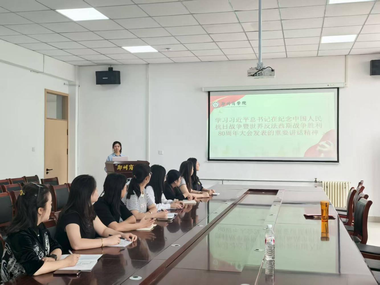 随后,支部全体党员在支部书记滕菲菲的带领下学习了习近平总书记的重要讲话精神,回顾了抗战历史,再次意识到了中国抗战胜利的伟大意义。党员同志们在学习讲话中深受感动,纷纷主动发言。教师党员张婉英讲道:“我们要铭记历史,传承和弘扬伟大抗战精神,以忠诚和担当投入到工作中,为学校的高质量发展贡献更多智慧和力量。”通过学习,党员们深刻理解了抗战胜利的伟大意义,更加坚定了弘扬和传承伟大抗战精神的决心。