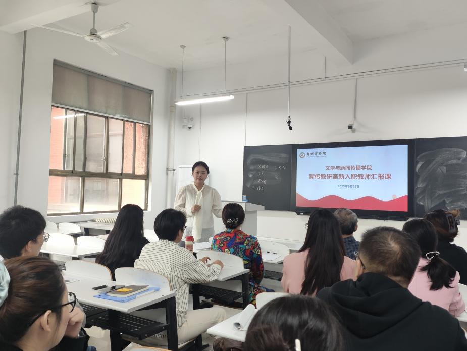 为进一步提升教学质量、深化课程内涵建设,推动学科发展与人才培养深度融合,文传学院新传教研室于9月26日上午10点在自立楼H214举行新入职教师汇报课和教研室其他教师说课活动,副院长曹萌及新传教研室全体无课教师参加活动。