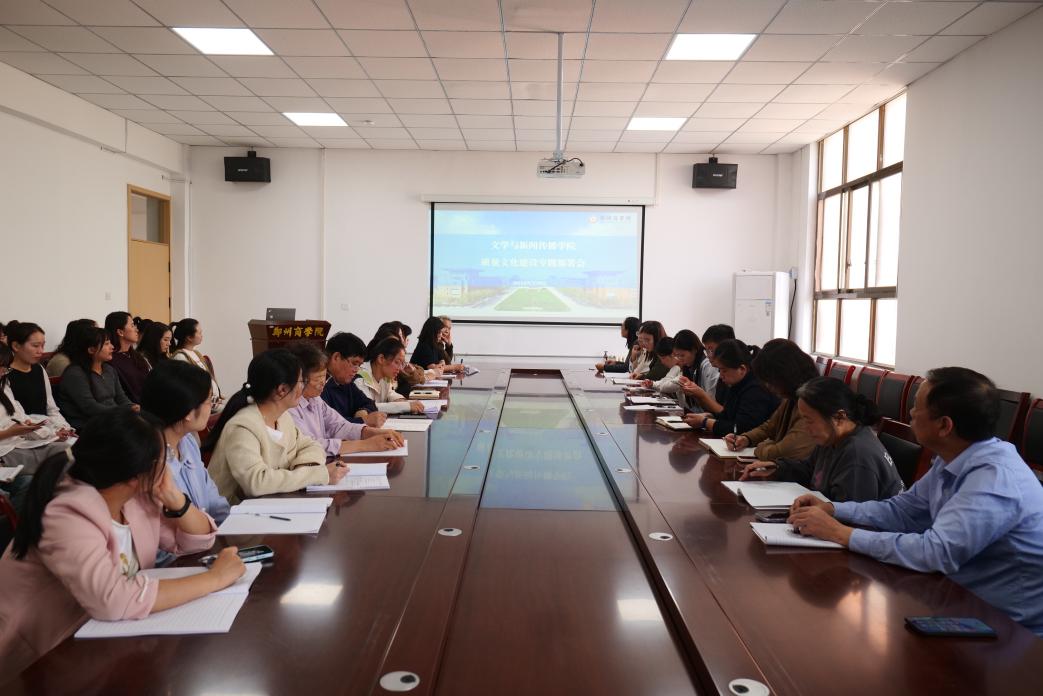 以人文特色筑质量,用专业实践促育人。为将学校质量文化建设要求落到文传学院教学与人才培养实处,让“自觉、自省、自律、自查、自纠”的质量理念融入师生日常教与学,9月29日上午,文传学院在自立楼H216会议室召开质量文化建设专题部署会。院长石璐、副院长曹萌、各教研室主任以及全体无课教师参会,围绕“如何让质量文化贴合文传专业特色、服务学生成长”展开务实交流,明确后续工作思路与路径。