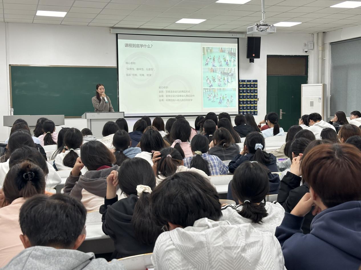 随后,专业课教师吉宇从专业课程体系的角度,详细解读了学前教育核心课程所涵盖的健康、语言、社会、科学、艺术等“五大领域”。其讲解条理清晰,帮助新生们构建起对专业学习内容的宏观认知框架,明确了未来几年的学习重点和方向。