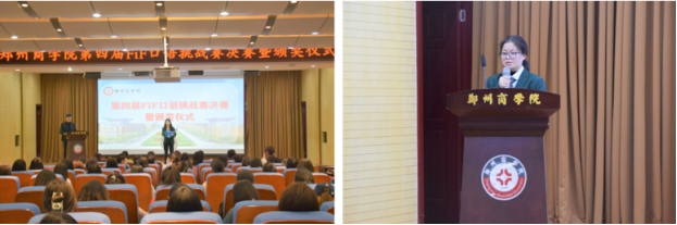 3月9日下午,外国语学院于图书馆多功能厅举办第四届FiF口语挑战赛决赛暨颁奖仪式,出席本次活动的有会计学院祝利芳院长、梁鹏书记、刘金金副院长,建工学院孙利民院长、张燕燕副院长、金贸学院杨山峰院长、外国语学王勃院长、邱培磊副院长、工商学院张老师、艺术学院郑老师以及各学院学生代表。