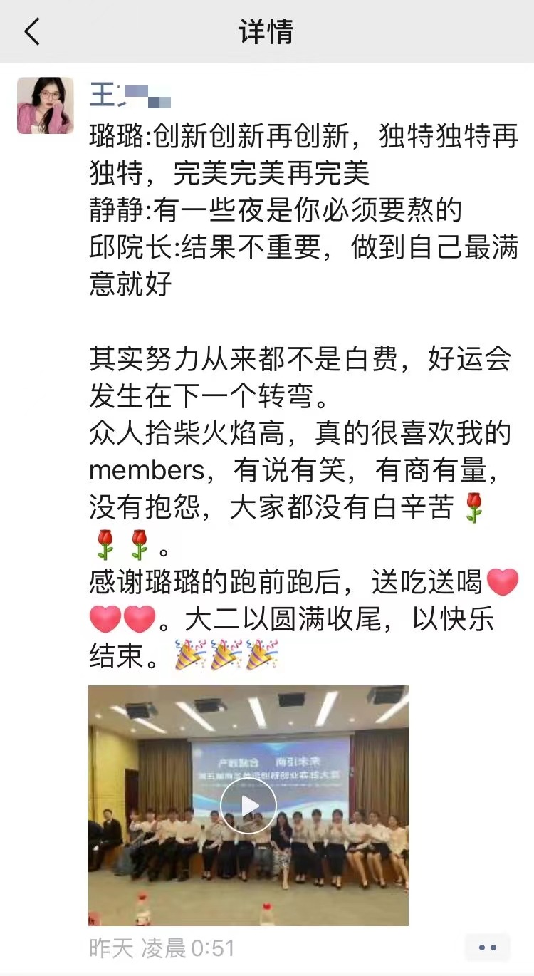 商务英语创新创业实践大赛是外国语学院的传统特色赛事,每年举办一次。三个月以来,参赛选手围绕创新创业类、市场拓展类、企业问题解决类等三个方向进行选题,通过线上或线下调研、数据收集、市场分析、方案拟订等多种方式完成实践项目,最终以英文报告形式呈现。本次大赛培养了学生商务思维与商务实践能力,激发了学生创新思维与创业意向,同时营造了浓郁的商科专业学习氛围,观摩大赛的20级学生纷纷表示要努力学习,期待来年自己也能够登上决赛舞台。