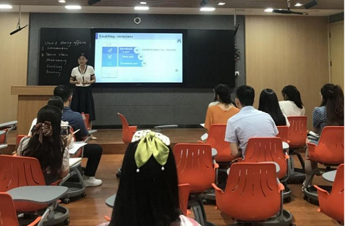 为使新进教师尽快进入教师角色、上好新学期第一堂课,8月23日下午,我院在外语楼108开展了新学期外国语学院师资培养系列之教学示范课活动。本次活动特邀商务英语教研室主任葛莹辉、英语专业教研室教师陈爱菊做示范课,全体新入职教师进行观摩。