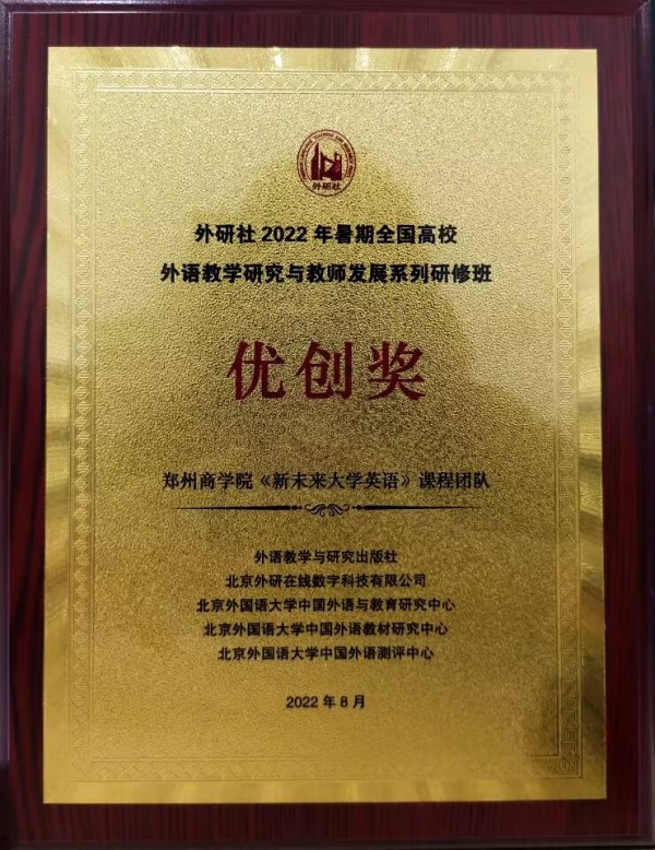 我院《新未来大学英语》课程团队荣获外语教学研究与教师发展系列研修优创奖