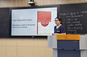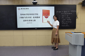 本次比赛中,参赛教师结合《理解当代中国》的英语或德语读写教材,运用现代英语教学理论和方法,进行20分钟教学说课和现场教学。参赛选手讲课思路清晰,教学过程流畅,注重线上线下的融合,讲究教学方法,关注学生,教学设计注重与学生的互动,引发学生兴趣。评委们按照客观公正的原则,对参赛教师的综合表现进行了现场评分。