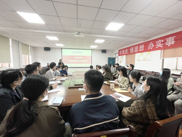 为确保毕业论文指导工作的有序开展,提升本科毕业论文质量,规范毕业论文写作和管理工作,10月14日下午,我院于外语楼209会议室为近三年新入职教师举办了一场毕业论文指导培训会,外国语学院副院长赵保成、翻译专业教研室主任郜万伟老师、各专业论文工作负责人及新入职教师参加了本次会议。