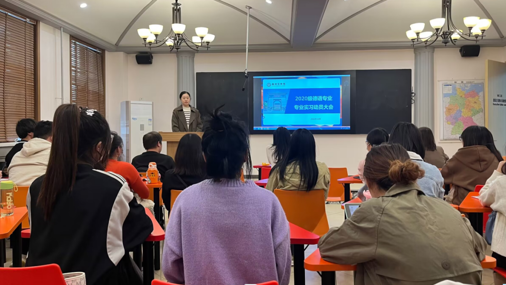 以语言为钥匙,以声音为桥梁,培养德语专业本科生学习德语、了解德语国家文化的兴趣,在实践中提高自己的表达、表演能力和综合语言能力,从而提高学生的德语综合能力,以适应未来实践的需要。10月21日上午,外国语学院日语与德语专业教研室德语教师侯聪聪在外语楼W118举行了德语专业专业实习动员大会。