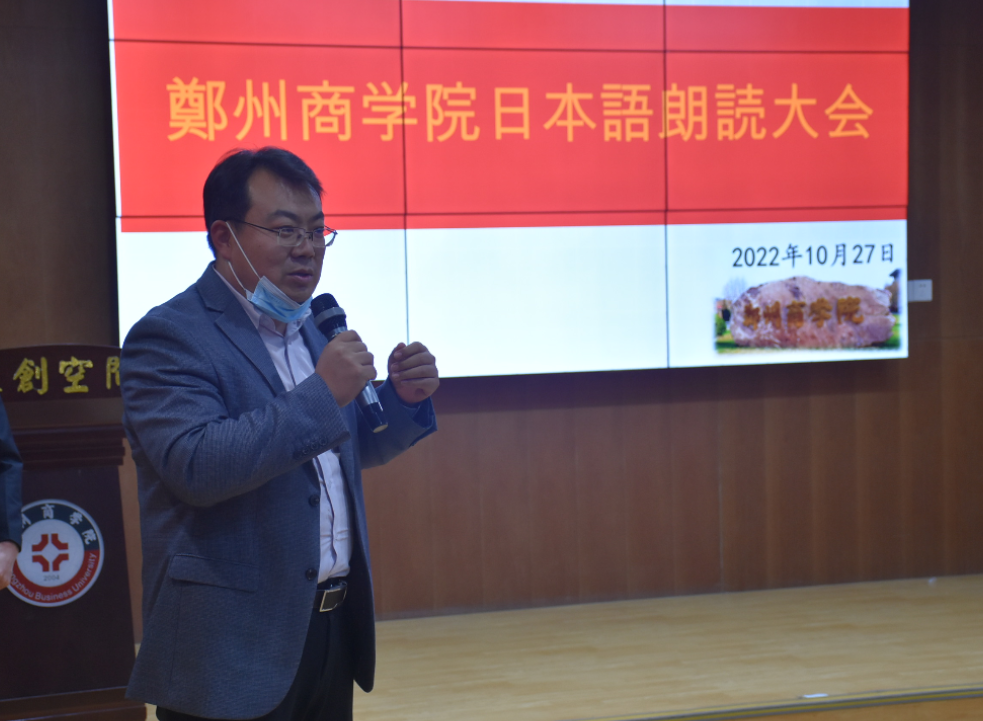 比赛结束后,王超伟老师对本次比赛进行现场点评。他首先肯定了选手们在本次比赛中的精彩表现,鼓励同学们树立自信。随后指出了选手们在语音、语调、语感等方面存在的问题,要求同学们以高标准要求自己,加强训练,并为大家分享了如影子跟读、学唱日文歌曲等方法来提升口语水平。