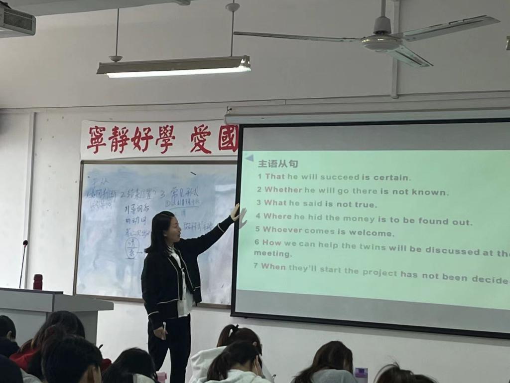 10月28日上午,外国语学院大学英语第二教研室王静老师为文传学院部分考研班学生讲授了一场公开展示课,大学英语第二教研室全体考研组老师参加了此次听课。王静老师以《考研核心词汇及名词性从句》为题进行了教学展示。