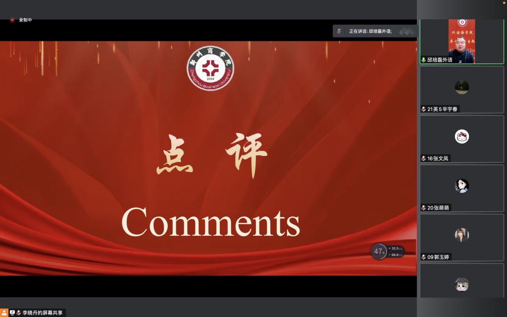 模拟课堂环节结束后,首先邀请了比赛评委代表白根元教授对参赛选手的表现进行了点评。白教授充分肯定了参赛选手的努力并指出,此次大赛中各团队教学目标明确,教学过程十分清晰,教学环节较为完整。大赛最后,邀请邱培磊院长致辞。邱院长表示,选手们的精彩表现让老师们分外惊喜和感动。邱院长向学生们殷切寄语:同学们要享受每一场比赛的过程,在比赛中充分展现自身风采,把握每一次人生机遇,利用好身边的每一个平台,实现自我的快速成长,争取早日成长为社会的骨干和脊梁,成长为时代的先锋和青年的表率,不负人生韶华。