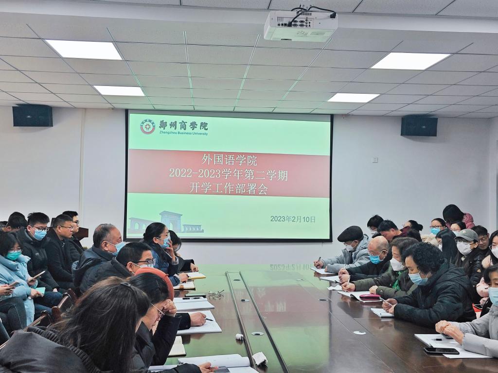 为保障我院开学各项工作科学、规范、有序的推进,明确新学期工作方向,2月10日上午,我院于W209会议室顺利召开了2022-2023学年第二学期开学工作部署会,外语学院党委书记王克志、院长邱培磊、副院长赵保成及全体教职工参会,会议由邱院长主持。