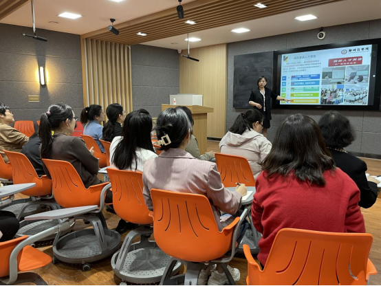 吕老师分析了国际人才英语教学、国才英语考试对国际化人才培养的促进作用,大学英语教学亦需立足中国、沟通世界、服务职场。最后吕老师分享了“创新讲”“强输出”“提能力”“养思辨”和“融思政””五个方面的教学改革措施,并图文并茂展示课程组教师相互听课和学生积极展示的效果。