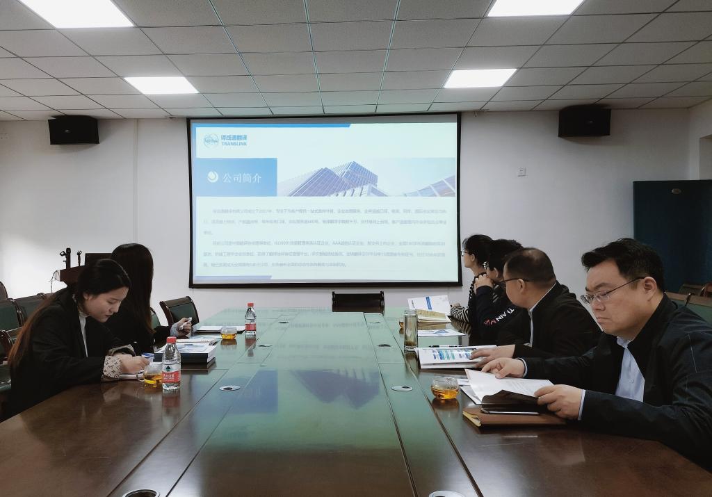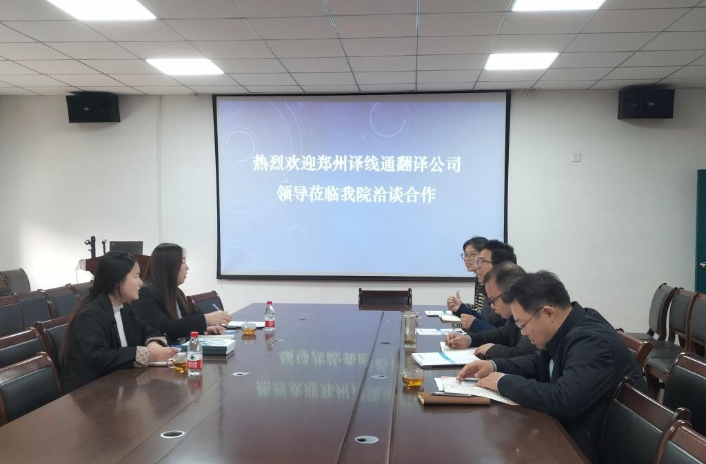 为了更好地开展校企合作,共同推进语言服务教学实践的发展,2023年3月15日上午,郑州译线通翻译有限公司校企合作部经理鲍俐利、程明玉等人来到外语学院进行参观考察,外语学院院长邱培磊、副院长赵保成、翻译专业负责人郜万伟以及商务外语实验中心主任贺琳出席洽谈会。双方就合作事宜进行了洽谈与深入交流。