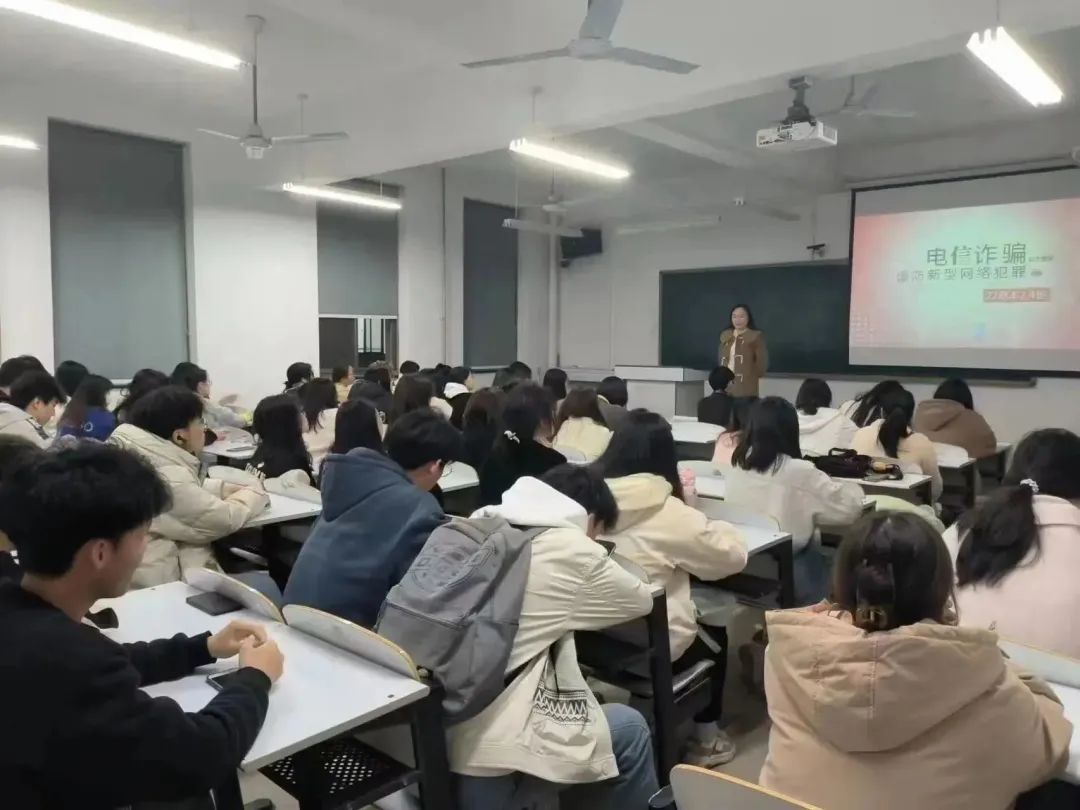 班会伊始,辅导员老师们分别从电话、网络、短信三个方面向同学们介绍电信诈骗,并分析电信诈骗的特点和易受害群体。接着,辅导员老师们通过具体案例向同学们分析电信诈骗的手段,从而加强同学们对电信诈骗的了解。最后,辅导员老师们指出,同学们遇到电信诈骗时,要及时寻求法律援助,用法律武器维护自己的合法权益,并呼吁他们牢记“五个不”:来电“不”大意、信息“不”轻信、链接“不”乱点、转账“不”着急、报警“不”犹豫,从而有效远离电信诈骗。