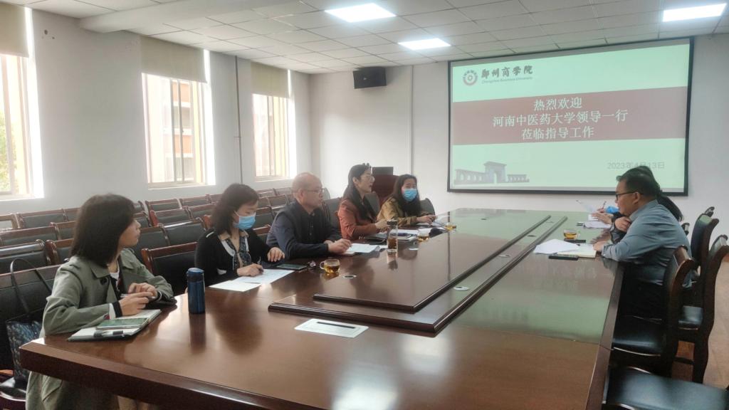 “河南省高等教育学会外语教学研究分会”“河南省外国语言类教学指导委员会”2023年年会将于4月22-23日举行,为共同商讨谋划年会各项细节,推动年会顺利举办,4月13日,河南中医药大学外语学院副院长张冰一行5人莅临我院交流指导并在外语楼209进行了研讨,我院院长邱培磊与会议负责人参加会议。