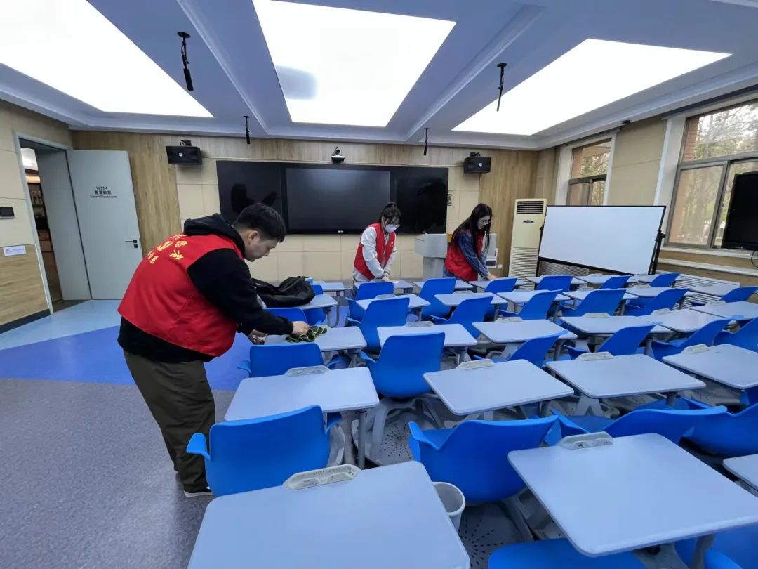 党员志愿者通过利用课余时间,发扬了不怕苦、不怕累的精神,对外语大楼所有实验室、翻转教室、谈判室等进行了清洁。活动中,党员不嫌脏、不怕累,手拿抹布、拖把、垃圾桶等工具,俯身拾捡散落在桌角、墙角缝隙等角落垃圾。遇到无法用工具清除的,就直接徒手进行清理。经过一个多小时的通力合作,所到区域被打扫得干净整洁。最终,在大家的共同努力下,外语大楼教室洁净如初。党员们看着干净整洁亮堂的教室,内心感到无比满足。