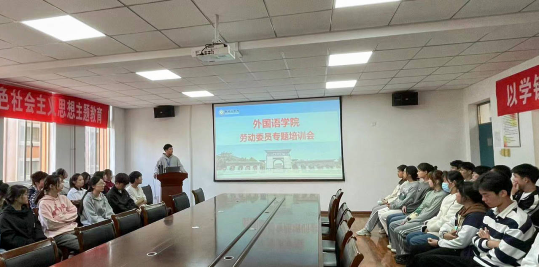 为规范学生日常劳动教育,提升劳动素养,使得各班劳动委员理解与强化其工作职能与细节。我院特于4月24日在W209召开外国语学院劳动委员专题培训会。会议由生活部负责人刘亚情同学主持,参会人员为22级室内外劳动委员及学生组织生活部成员。