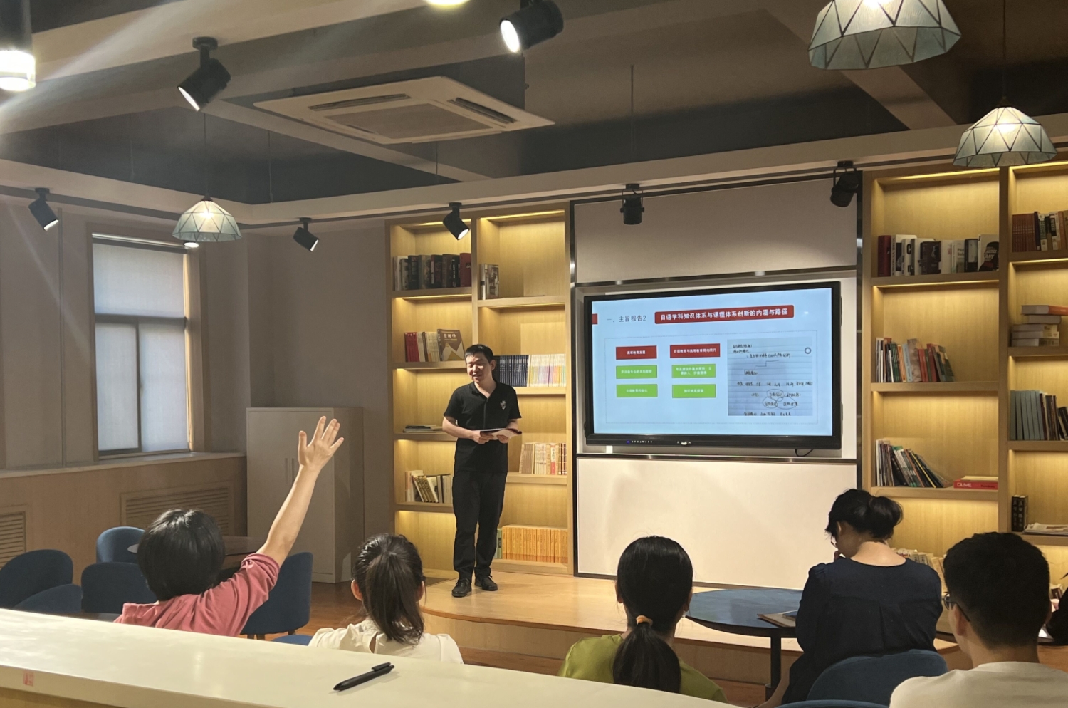 6月14日下午,我院在W102开展了第九届全国高校日语专业教学改革与发展高端论坛转训汇报,由钟浩老师主讲,日语与德语教研室老师参会,汇报内容包括:一、主旨报告和分论坛介绍;二、“理解当代中国”教学研讨;三、体会与课例分享。