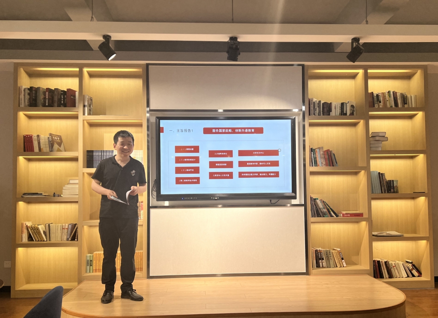 最后钟浩老师谈了自己的参会体会,在“ChatGPT”“文言一心”等通用人工智能诞生的背景下,应对复杂多变的国际局势和信息安全,必须充分发挥创造力,培养学生的人文素养和讲好中国故事的能力。运用新技术,探索智慧教学,加强低年级基础教学,同时要拓宽教学科研视野,探索高年级方向课和发力点。