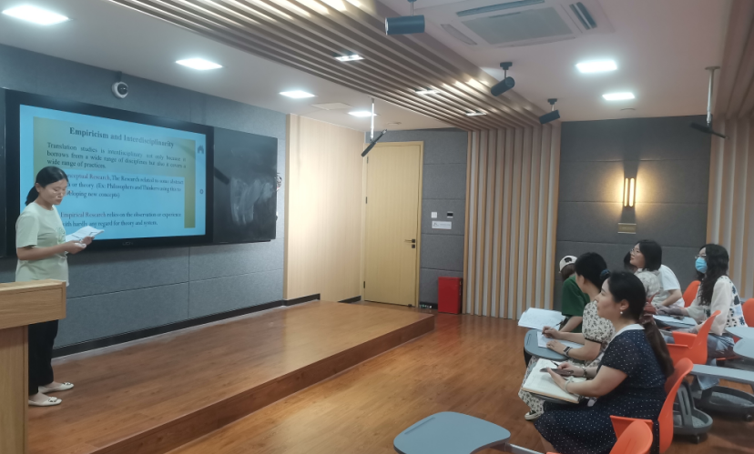 2023年6月14日下午,我院在外语楼W108教室进行了关于《语料库翻译方法能力提升与论文写作在线研修班》的转训活动,由我院英语专业教研室陈爱菊老师主讲,无课教师参加培训。