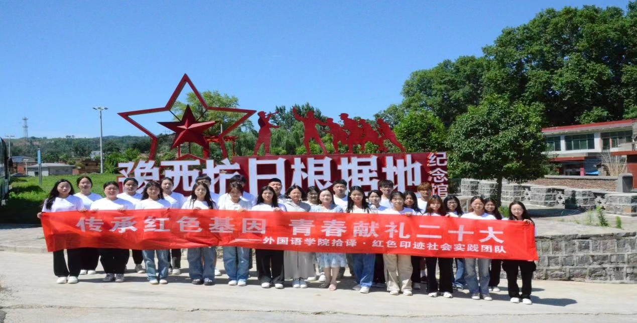 为全面系统学习贯彻习近平新时代中国特色社会主义思想,外国语学院积极响应团中央、团省委、校团委关于组织大学生暑期三下乡活动的号召,组建“拾译·红色印迹”社会实践团队,在指导老师的带领下实地调研走访了巩义市常香玉故居、豫西抗日根据地纪念馆、竹林博物馆红色教育基地,利用专业优势用双语对外传播优秀的中华文化,讲好红色故事。