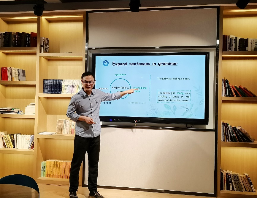 本次教学观摩课由英语专业教研室韩浩老师主讲,主要包括说课和示范课两部分,主讲内容为“How to expand a sentence”。韩浩老师授课态度认真、精神饱满,教学目标明确,教学活动丰富,教学过程组织有序。