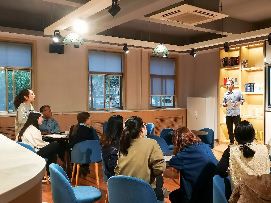 观摩课结束后,参加此次观摩课的老师们展开了评课研讨活动。邱院长、程主任、葛主任、张晓宁老师、曹晓晨老师等对于此次观摩课的内容组织、课程思政、活动时间安排、交流互动、语言表达和多媒体运用等方面进行了深入探讨和交流。