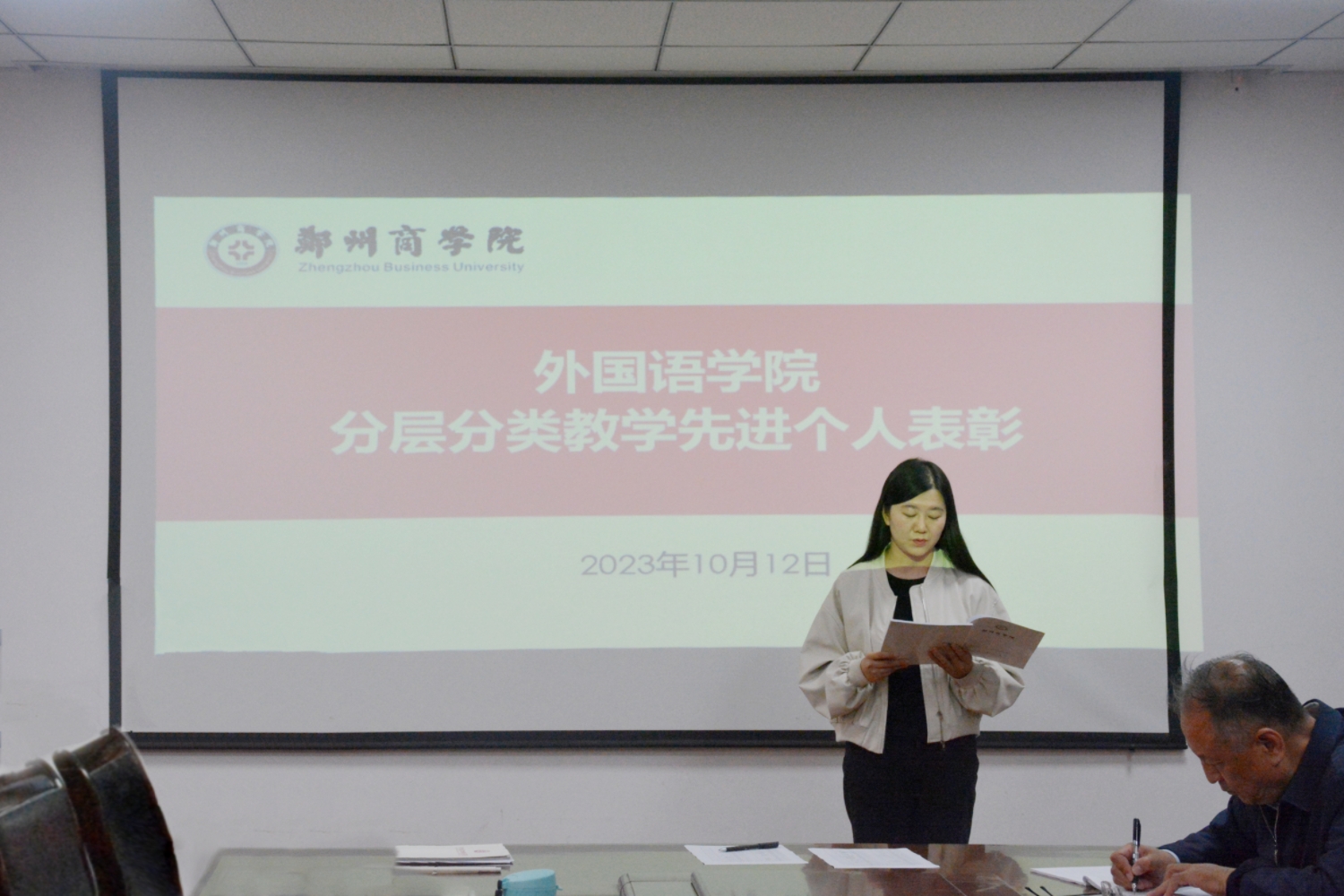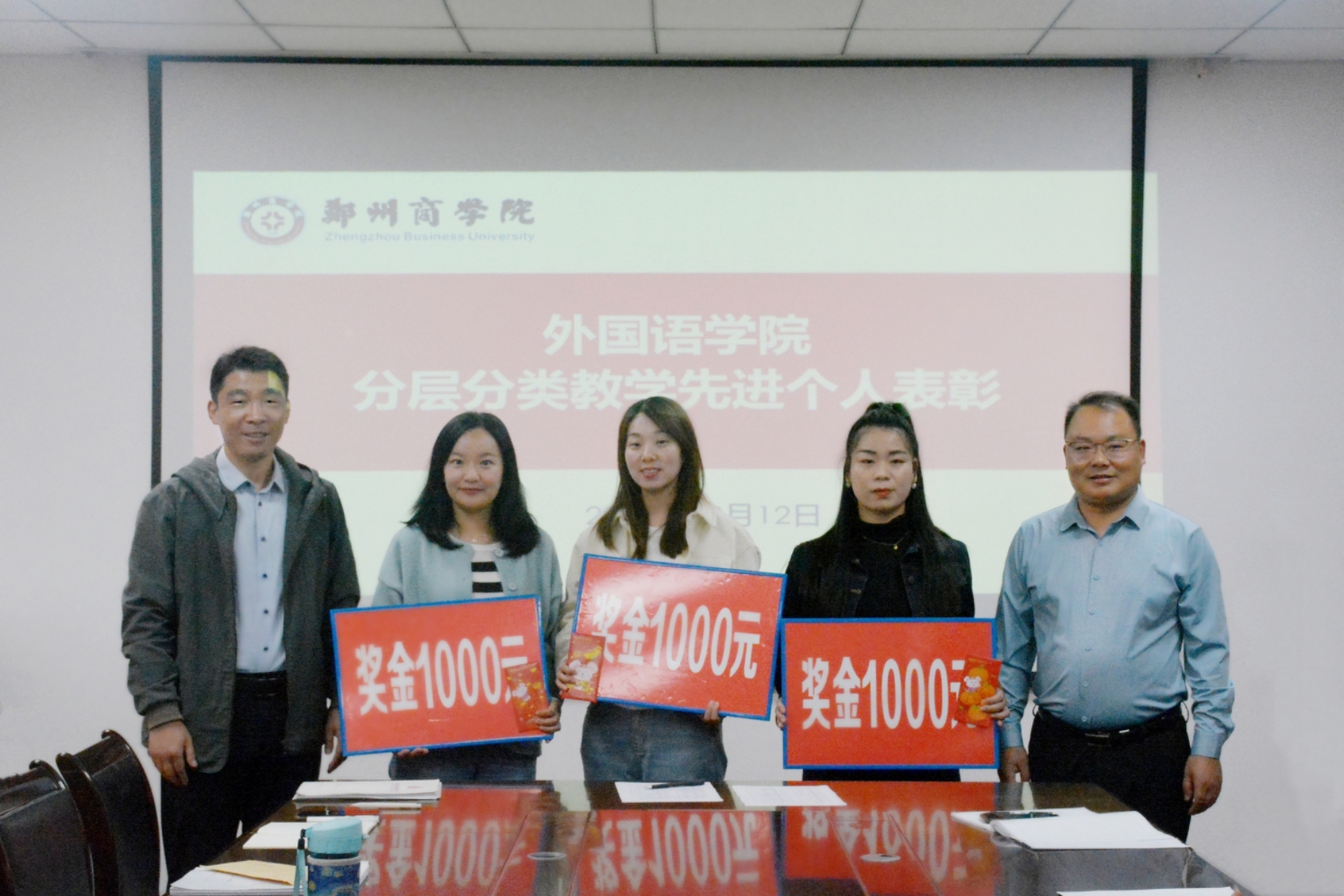 会议伊始,邱院长代表外语学院全体教职工对刘校长的到来表示欢迎。随后,邱院长向刘校长汇报了本学期的重点工作,主要包括打造高水平的教科研团队、取得高层次的质量工程成果、落实分层分类教学、提升考证、考研和就业等方面。邱院长还汇报了21级学生四六级及专四的通过率,对刘亚琴、翟茹洁、张姗姗三位优秀教师进行表彰和奖励,刘校长为三位优秀教师颁奖并对他们表示祝贺。