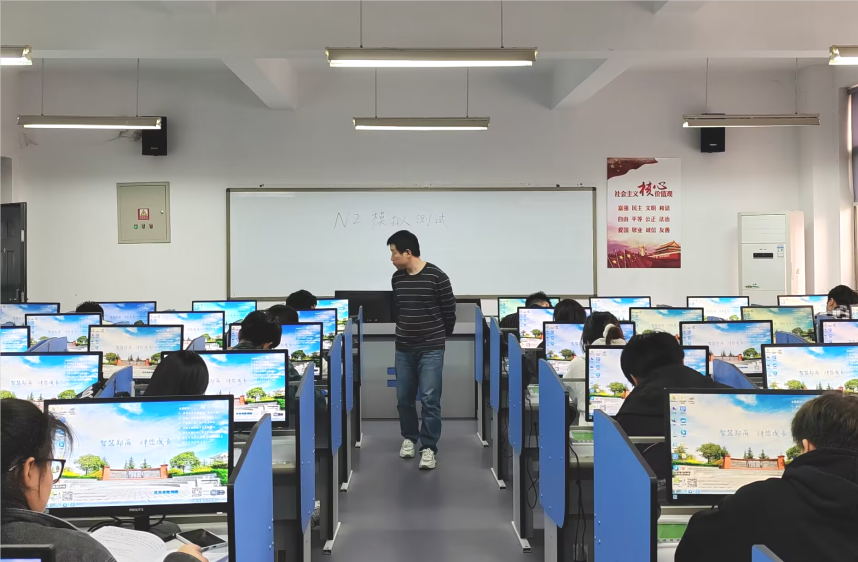 考试地点设在资讯楼Z202、Z203、Z204教室,考试题型包括语言知识、阅读理解、听力三大部分,分值为180分,考试时长为160分钟。本次模拟考试严格按照能力测试的要求,分时段进行实战演练。考风严明,监考人员认真负责,考生遵守考试纪律,所有考生均在规定时间内完成考试。考试结束后,日语专业教师将根据考试结果,对学生开展考试专题辅导。