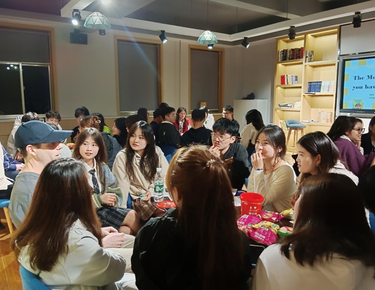 随着经济全球化的发展和世界文化交流的深入,外语能力的重要性变得越来越突出。为了提升学生的外语综合应用能力、提高学生国际化素养以及加强学生的就业竞争力,扎实推进外语第二课堂的教学工作,我院于2023年10月19日晚在W102多元文化交流厅开展了第一期英语角活动。本次活动由我院22商本4班学生作为参与主体,面向全校开放,外籍教师Kerin、Carl、Shay和Will参加本次活动。