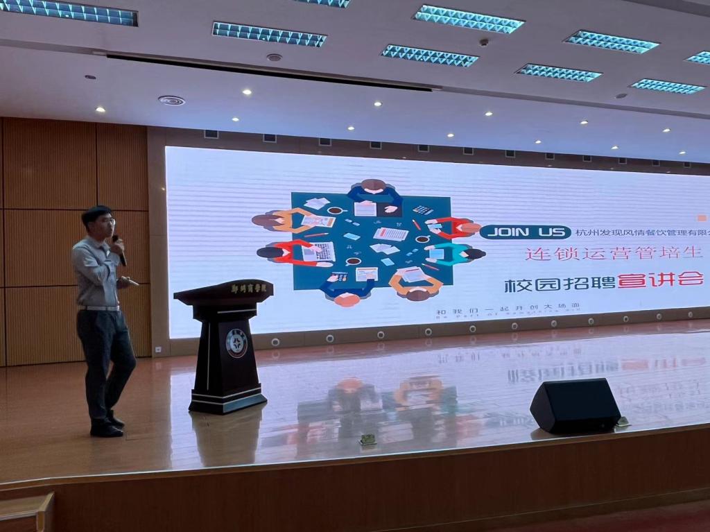 为进一步扩大我院毕业生就业渠道,提升毕业生就业质量,10月26日,我院在图书馆一楼报告厅举行专场宣讲会。杭州发现风情餐饮管理有限公司、洛阳佳音英语培训学校、郑州锦富传媒分别进行了专场宣讲活动。学院党委书记王克志、就业专员兰敬高、全体毕业班辅导员以及2024届毕业生参加了此次招聘宣讲会。