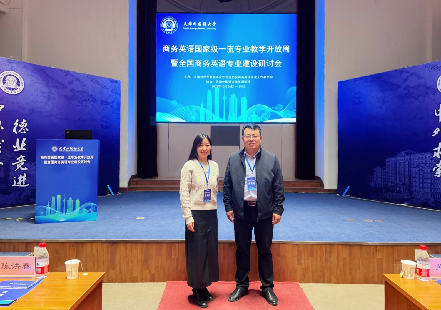 为高质量开展一流专业建设、课程思政和教育教学改革,我院赵保成副院长与商务英语专业张晓宁老师于10月26日至29日赴天津外国语大学参加了“商务英语专业建设研讨会暨商务英语教学开放周”活动,围绕商务英语一流专业课程建设、课程思政、课堂教学方法、线上线下混合式教学、教师发展等专题进行学习交流。本次开放周依托天津外国语大学国家级一流本科商务英语专业的优质师资,利用公开课、研讨课、专家讲座等多种形式,开展商务英语教学模式和教学方法研讨,来自全国50余所高校近百名教师参加该活动。