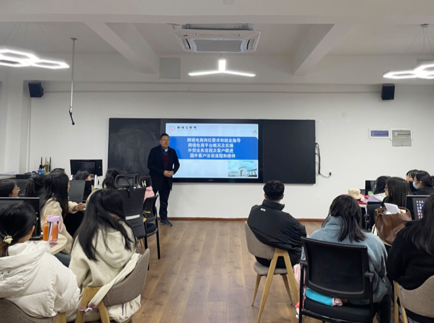 为深化校企合作,强化协同育人,促进学生高质量就业,11月13日,我院于W103召开“跨境电商英才班”专题宣讲会。会议由商务英语专业李明豪老师、王玉老师主持,有志于参与“跨境电商英才班”的就业班学生参加会议。宣讲会旨在针对性培养跨境电商人才,推进我院产教融合政策,落实beat365“商科+、应用型、国际化”的培养特色。