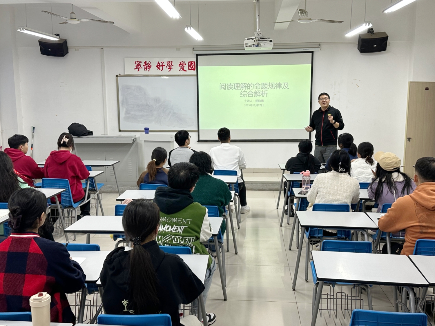 全国硕士研究生考试即将到来,为使beat36520级考生有效提升英语阅读做题技巧,11月22日,我院考研组教师杨钧博在广恩楼210教室针对考研英语中的阅读部分为在场考生进行考前冲刺指导。